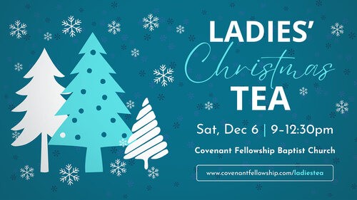 🎄 Come experience a fun time of reflection and rest as we gather together for our Annual Ladies' Christmas Tea. The tea will be on Saturday, December 6 from 9 AM–12:30 PM. The total cost of the event is $25 and will include lunch, worship, testimonies, fellowship, and fun.
